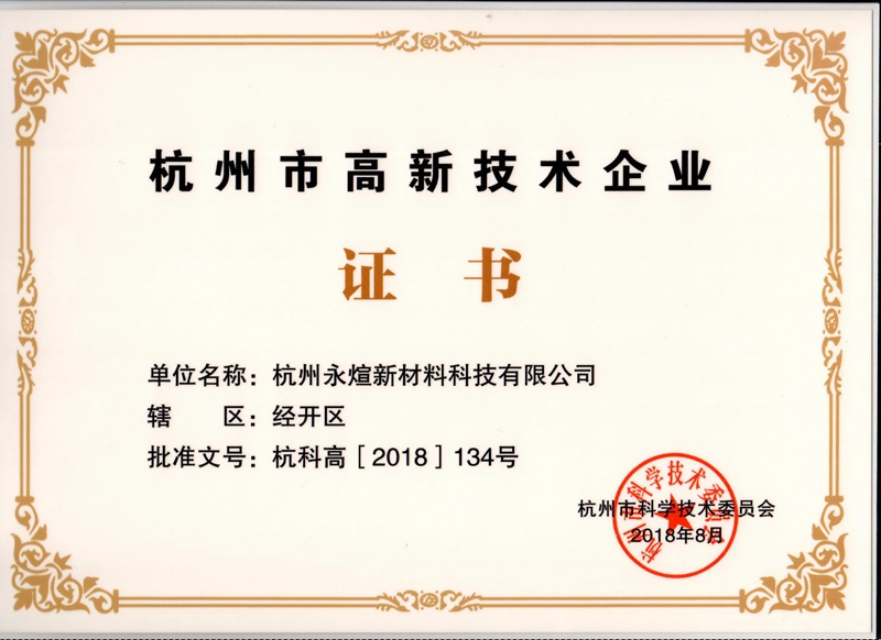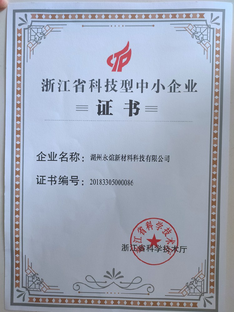 浙江省科技型中小企業證書(湖州永煊)